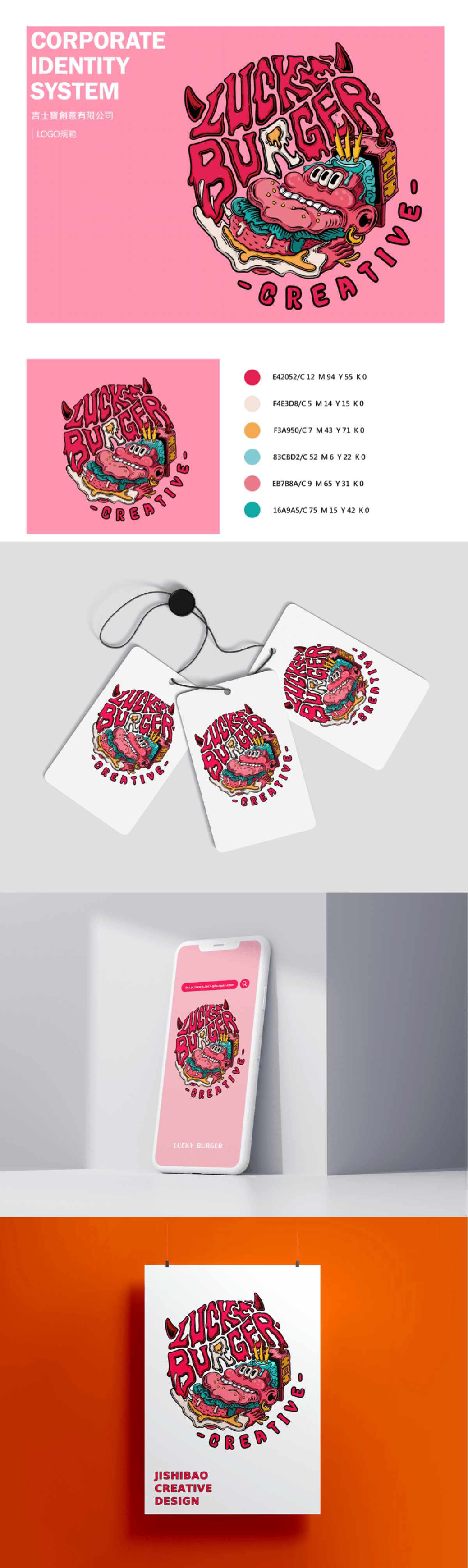 咬開象徵創意的粉紅漢堡後,想法源源不斷,大腦都為之驚嘆的眼睛發光,頭上的角暗喻著強過常人的創意發想與思考邏輯。